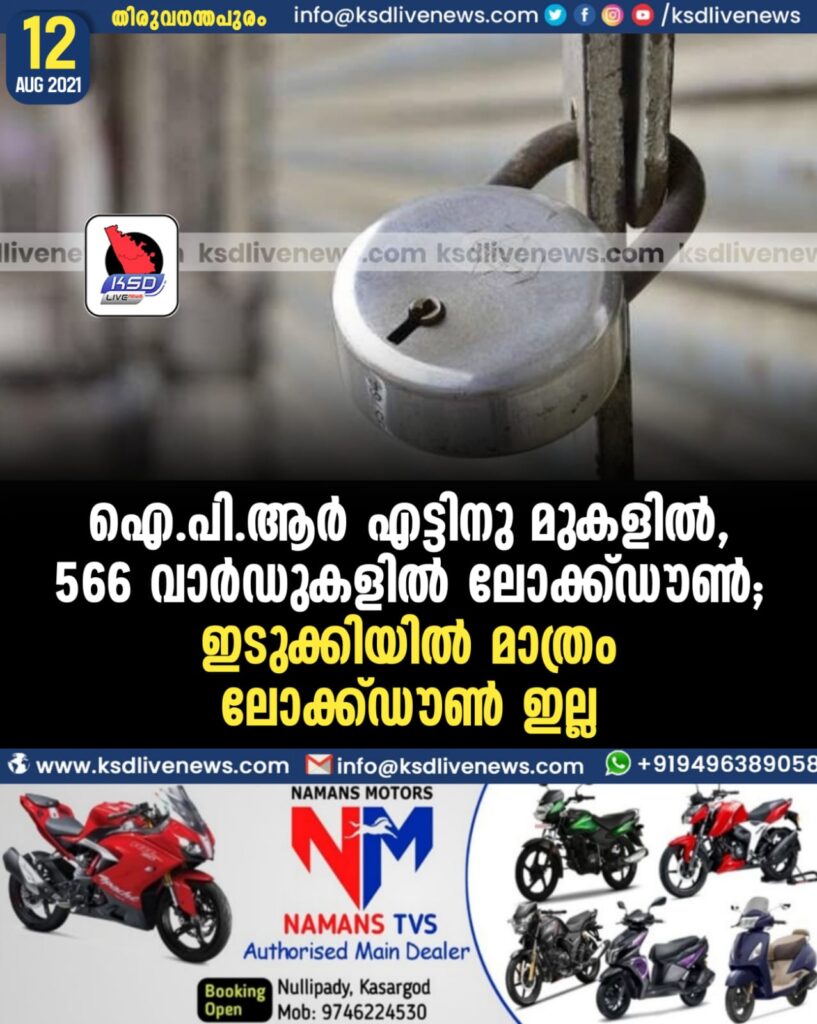 ഐ.പി.ആർ എട്ടിനു മുകളിൽ, 566 വാർഡുകളിൽ ലോക്ക്ഡൗൺ; ഇടുക്കിയിൽ മാത്രം ലോക്ക്ഡൗൺ ഇല്ല