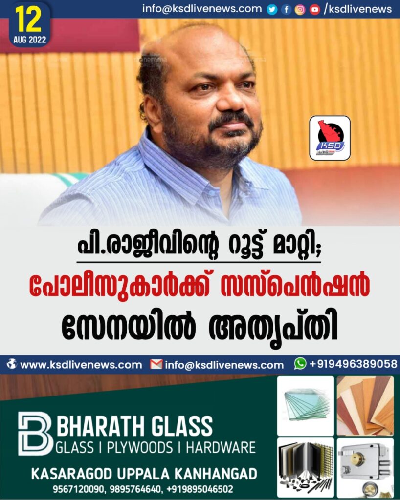 പി.രാജീവിന്റെ റൂട്ട് മാറ്റി; പൊലീസുകാര്ക്ക് സസ്പെന്ഷന്, സേനയിൽ അതൃപ്തി