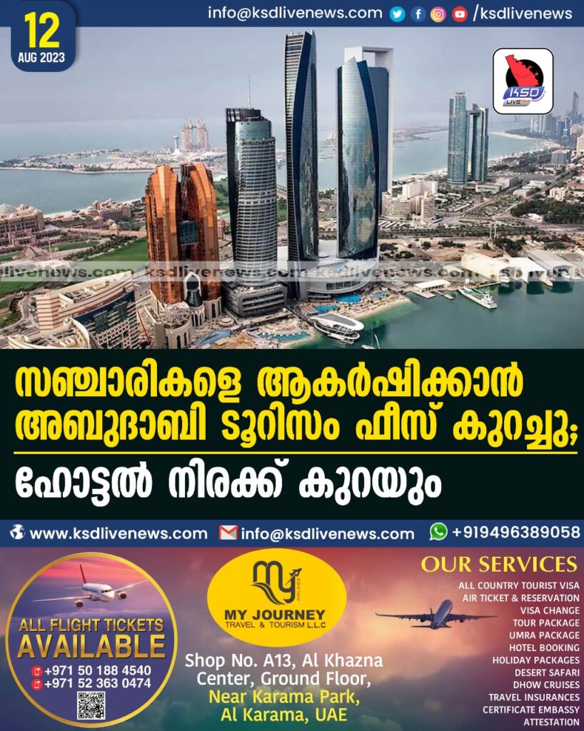 സഞ്ചാരികളെ ആകർഷിക്കാൻ അബുദാബി ടൂറിസം ഫീസ് കുറച്ചു; ഹോട്ടൽ നിരക്ക് കുറയും