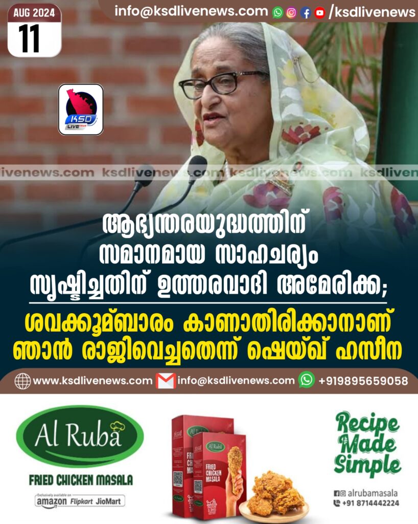 ആഭ്യന്തരയുദ്ധത്തിന് സമാനമായ സാഹചര്യം സൃഷ്ടിച്ചതിന് ഉത്തരവാദി അമേരിക്ക; ശവക്കൂമ്പാരം കാണാതിരിക്കാനാണ് ഞാൻ രാജിവെച്ചതെന്ന് ഷെയ്ഖ് ഹസീന