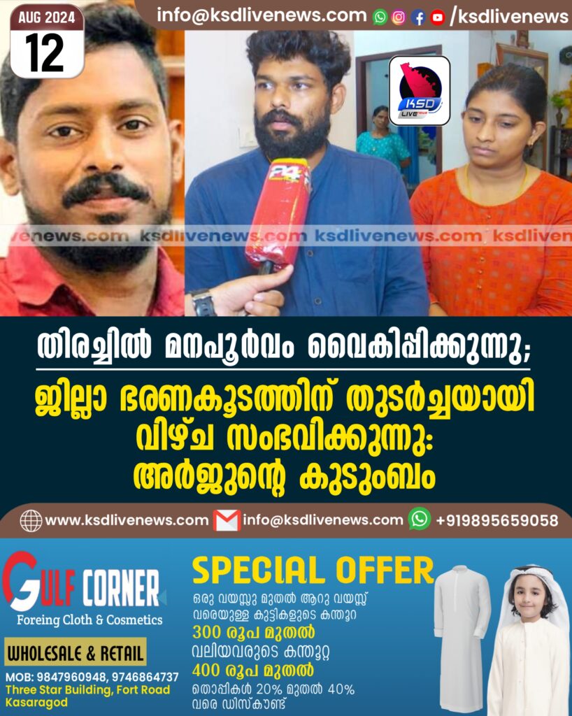 തിരച്ചിൽ മനപൂർവം വൈകിപ്പിക്കുന്നു; ജില്ലാ ഭരണകൂടത്തിന് തുടർച്ചയായി വിഴ്ച സംഭവിക്കുന്നു’: അർജുൻ്റെ കുടുംബം
