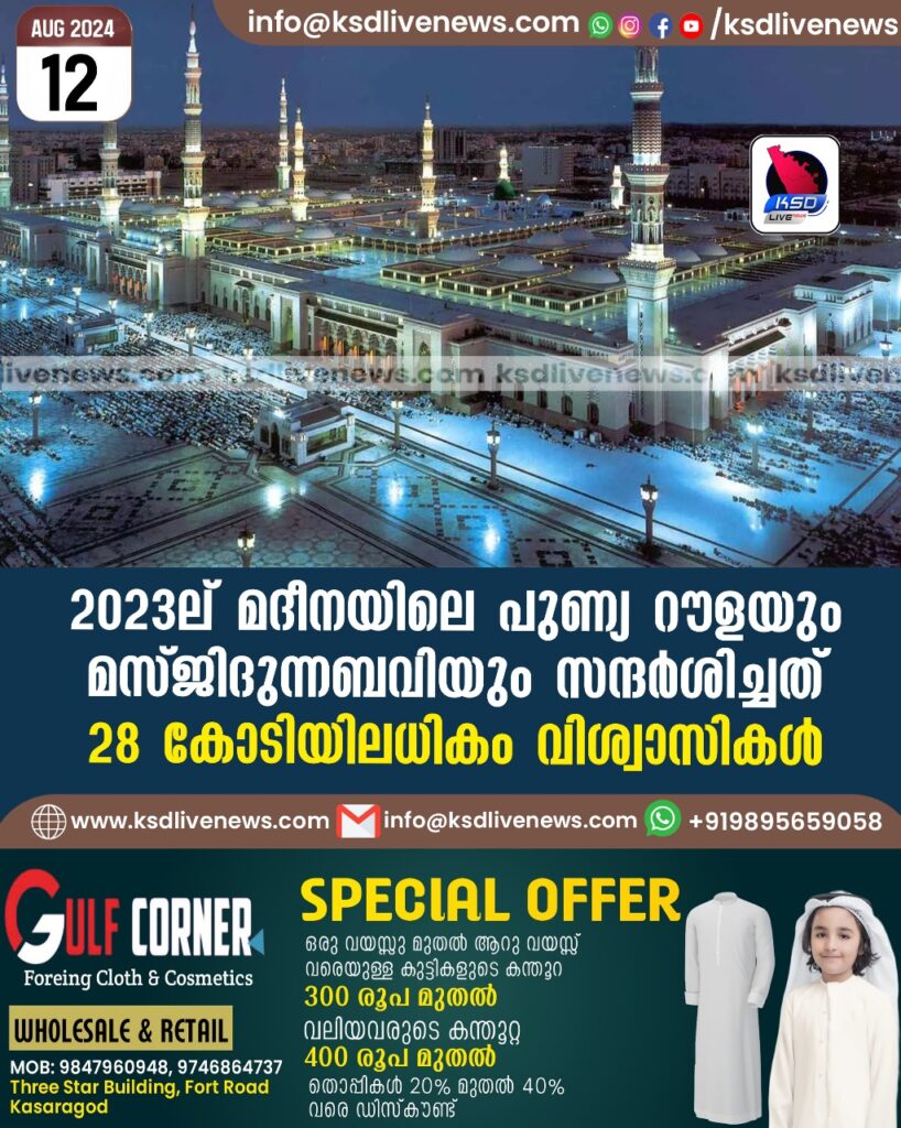 2023ല് മദീനയിലെ പുണ്യ റൗളയും മസ്ജിദുന്നബവിയും സന്ദര്‍ശിച്ചത് 28 കോടിയിലധികം വിശ്വാസികള്‍