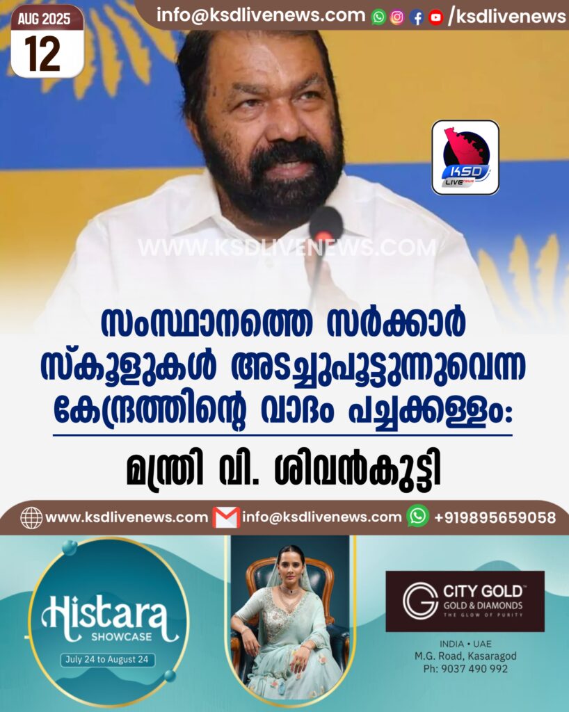 സംസ്ഥാനത്തെ സര്ക്കാര് സ്കൂളുകള് അടച്ചുപൂട്ടുന്നുവെന്ന കേന്ദ്രത്തിന്റെ വാദം പച്ചക്കള്ളം: മന്ത്രി വി. ശിവന്കുട്ടി