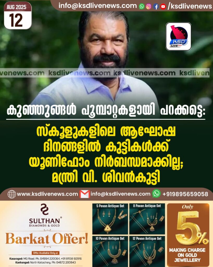കുഞ്ഞുങ്ങള്‍ പൂമ്പാറ്റകളായി പറക്കട്ടെ: സ്‌കൂളുകളിലെ ആഘോഷ ദിനങ്ങളില്‍ കുട്ടികള്‍ക്ക് യൂണിഫോം നിര്‍ബന്ധമാക്കില്ല; മന്ത്രി വി ശിവന്‍കുട്ടി