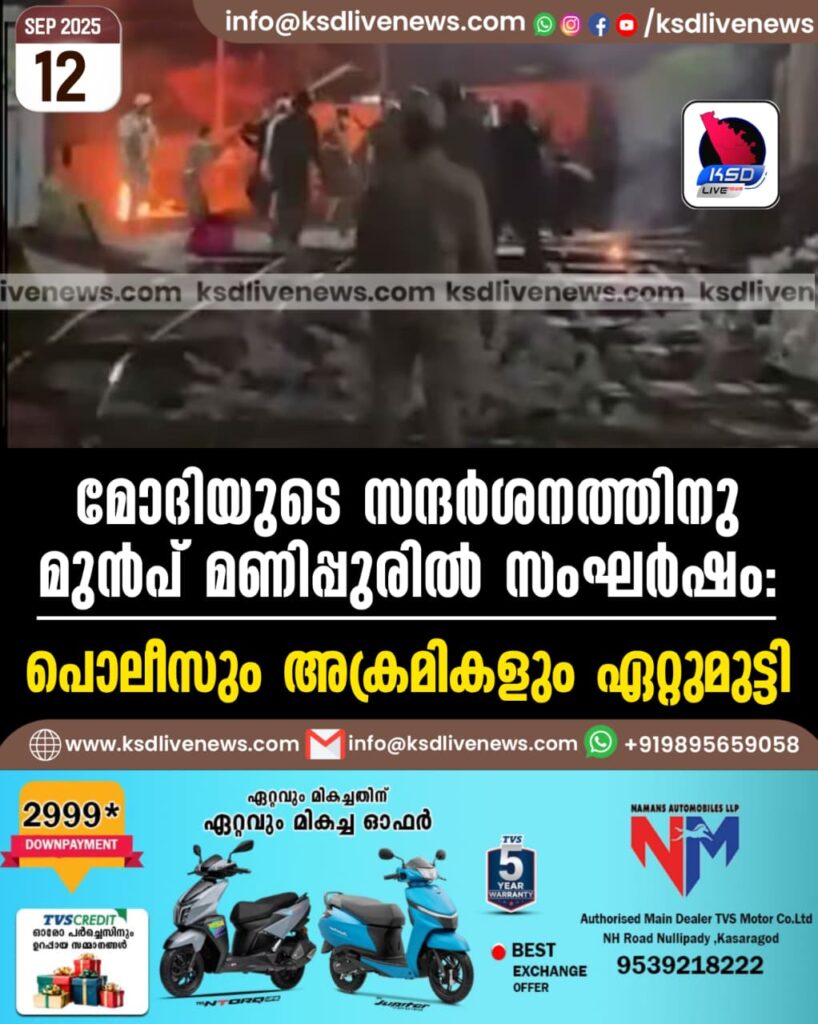 മോദിയുടെ സന്ദർശനത്തിനു മുൻപ് മണിപ്പുരിൽ സംഘർഷം: പൊലീസും അക്രമികളും ഏറ്റുമുട്ടി