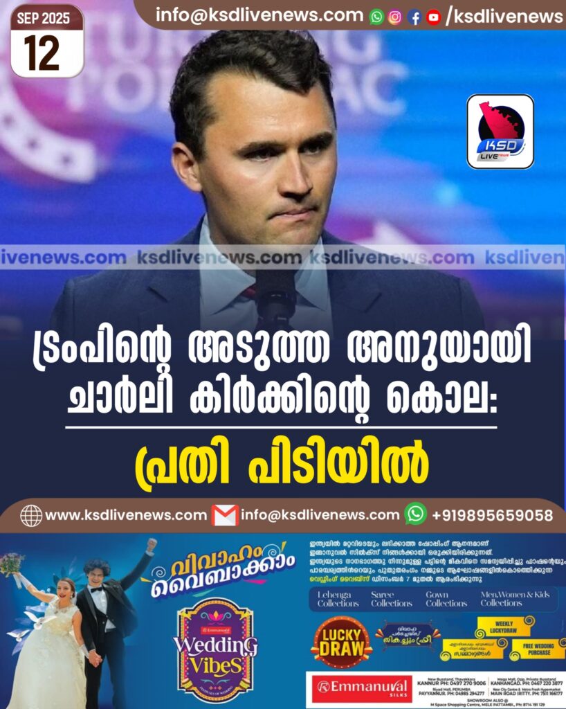 ട്രംപിൻ്റെ അടുത്ത അനുയായി ചാര്ലി കിര്ക്കിന്റെ കൊല: പ്രതി പിടിയിൽ