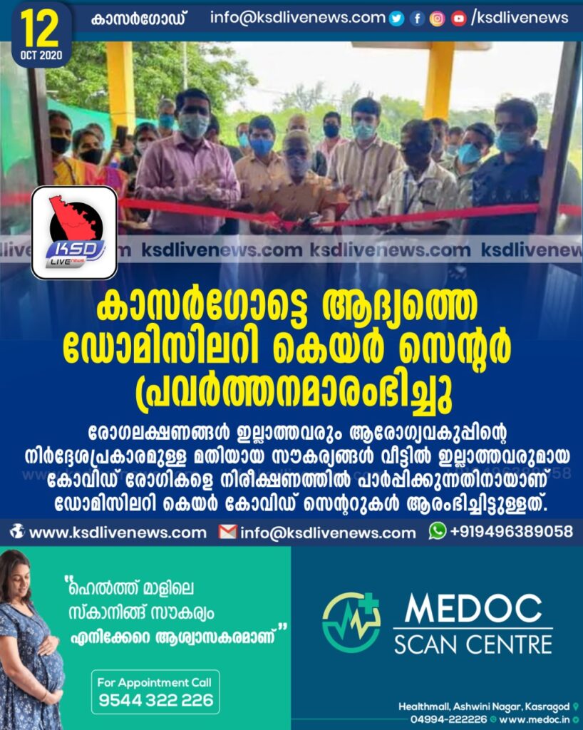 കാസർഗോട്ടെ ആദ്യത്തെ ഡോമിസിലറി കെയർ സെന്റർ പ്രവർത്തനമാരംഭിച്ചു