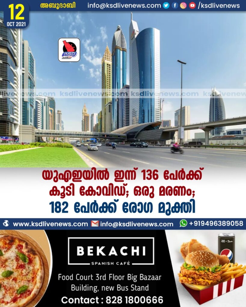 യുഎഇയില് ഇന്ന് 136 പേര്ക്ക് കൂടി കോവിഡ് ; ഒരു മരണം; 182 പേർക്ക് രോഗ മുക്തി