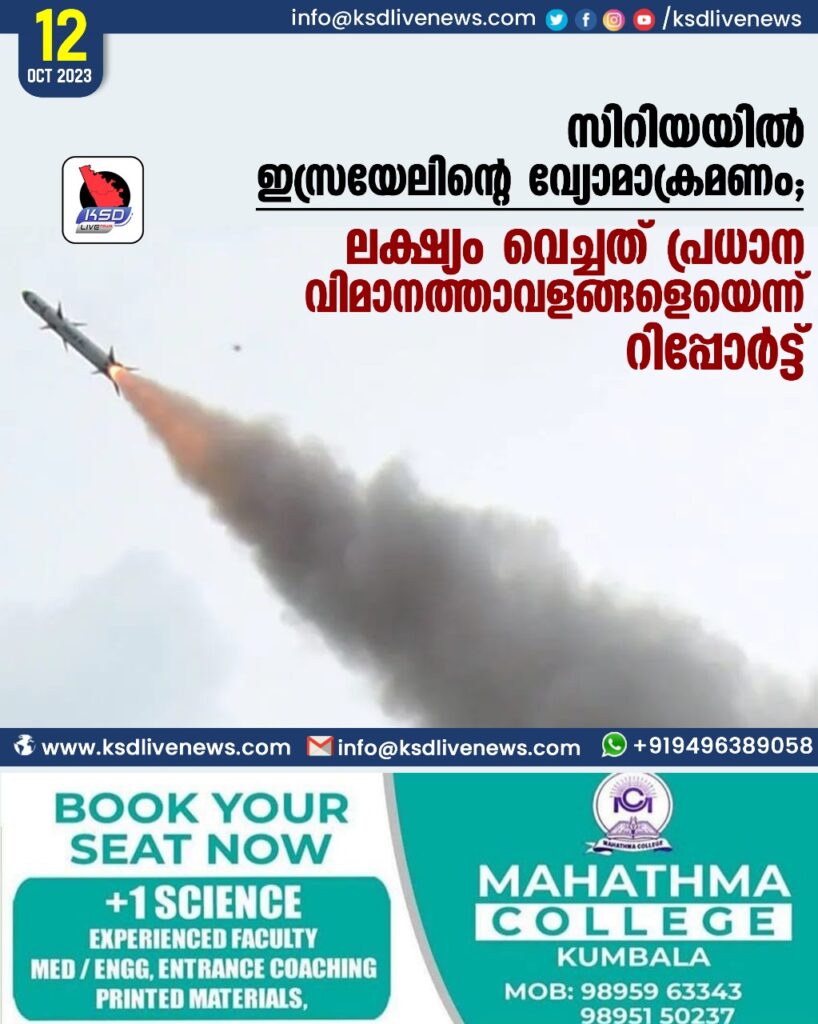 സിറിയയിൽ ഇസ്രയേലിൻ്റെ വ്യോമാക്രമണം; ലക്ഷ്യം വെച്ചത് പ്രധാന വിമാനത്താവളങ്ങളെയെന്ന് റിപ്പോർട്ട്.