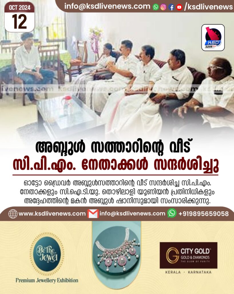 സി.പി.എം. ജില്ലാ സെക്രട്ടേറിയറ്റ് അംഗം എം. സുമതി, കാസർകോട് ഏരിയാ സെക്രട്ടറി കെ.എ. മുഹമ്മദ് ഹനീഫ, സി.ഐ.ടി.യു. സംസ്ഥാന സെക്രട്ടറി ടി.കെ. രാജൻ, ഓട്ടോ തൊഴിലാളി യൂണിയൻ (സി.ഐ.ടി.യു.) നേതാക്കളായ എ.ആർ. ധന്യവാദ്, ഷാഫി ചാലക്കുന്ന് എന്നിവരാണ് അബ്ദുൾസത്താറിന്റെ വീട് സന്ദർശിച്ചത്.