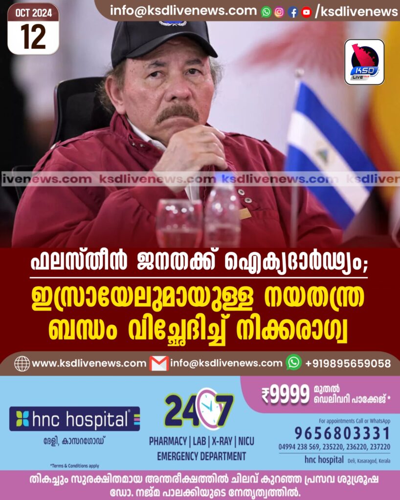 തെൽഅവീവ്: ഫലസ്തീൻ ജനതക്ക് ഐക്യദാർഢ്യം പ്രഖ്യാപിച്ച് ഇസ്രായേലുമായുള്ള നയതന്ത്ര ബന്ധം വിച്ഛേദിച്ച് നിക്കരാഗ്വ. ദേശീയ അസംബ്ലിയുടെ ഏകകണ്ഠമായ തീരുമാനത്തിന് ശേഷം ഇസ്രായേലുമായുള്ള എല്ലാ നയതന്ത്ര ബന്ധങ്ങളും വിച്ഛേദിച്ചതായി നിക്കരാഗ്വ സർക്കാർ അറിയിച്ചു.