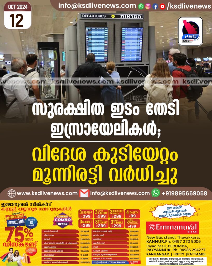 ഗസ്സയിലും ലബനാനിലും ഇസ്രായേൽ ആക്രമണം കനപ്പിക്കുമ്പോഴാണ് സ്വന്തം രാജ്യത്തുനിന്ന് ആളുകൾ വിദേശത്തേക്ക് കുടിയേറുന്നത്. ഹിസ്ബുല്ലയുടെ ആക്രമണം തുടരുന്നതിനാൽ അധിനിവേശ വടക്കൻ ഇസ്രായേലിൽനിന്ന് ലക്ഷക്കണക്കിന് കുടിയേറ്റക്കാരാണ് മധ്യ ഇസ്രായേലിലേക്കടക്കം പലായനം ചെയ്തിട്ടുള്ളത്.