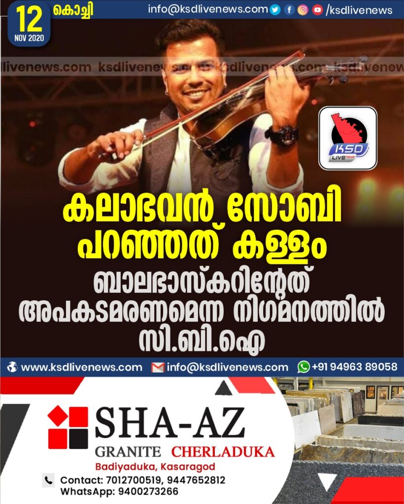 കലാഭവന് സോബി പറഞ്ഞത് കള്ളം ; ബാലഭാസ്കറിന്റേത് അപകടമരണമെന്ന നിഗമനത്തില് സി.ബി.ഐ