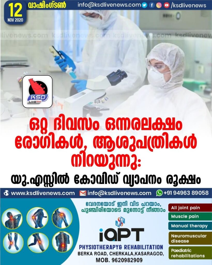 ഒറ്റ ദിവസം ഒന്നരലക്ഷം രോഗികള്‍, ആശുപത്രികള്‍ നിറയുന്നു: യു.എസ്സില്‍ കോവിഡ് വ്യാപനം രൂക്ഷം