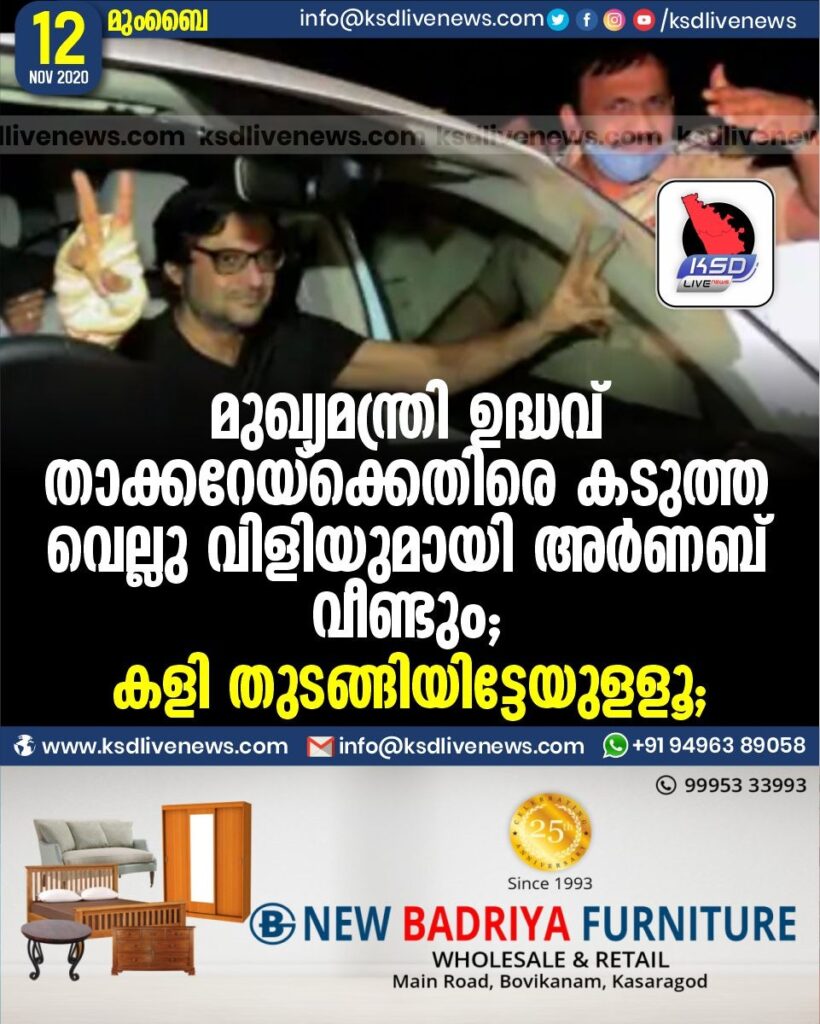 മുഖ്യമന്ത്രി ഉദ്ധവ് താക്കറേയ്ക്കെതിരെ കടുത്ത വെല്ലു വിളിയുമായി അർണബ്