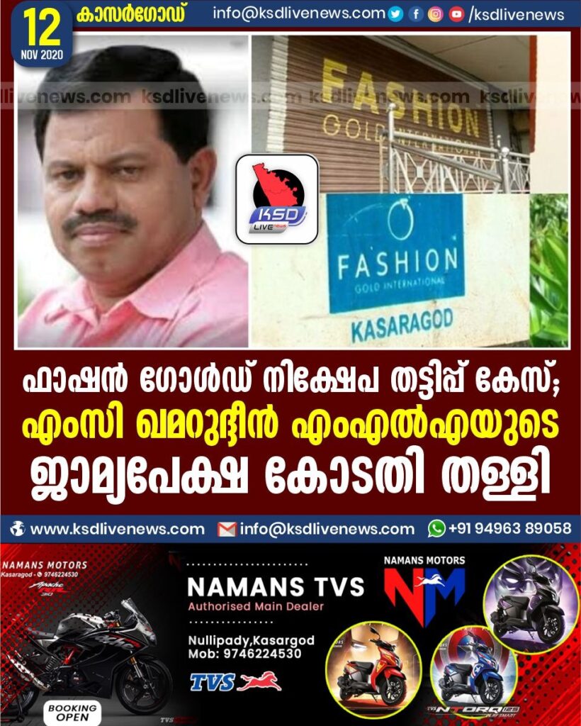 എംസി ഖമറുദ്ദീൻ എംഎൽഎയുടെ ജാമ്യപേക്ഷ കോടതി തള്ളി