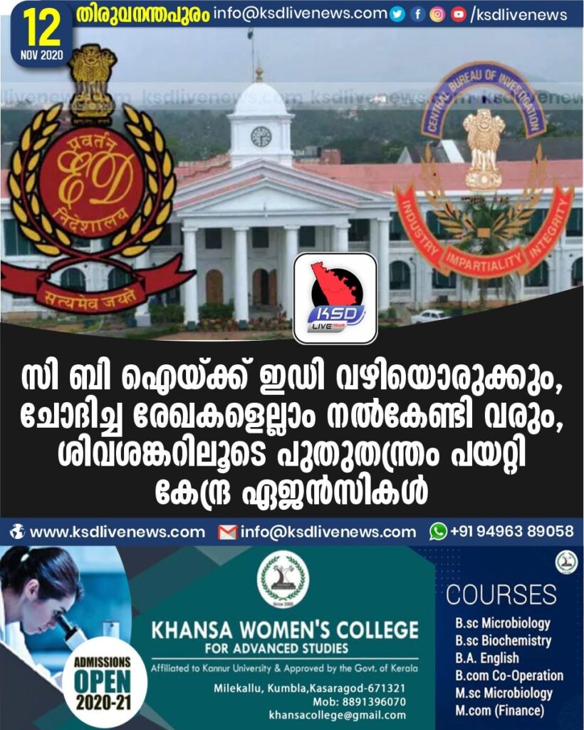 സി ബി ഐയ്ക്ക് ഇഡി വഴിയൊരുക്കും , ചോദിച്ച രേഖകളെല്ലാം നൽകേണ്ടി വരും , ശിവശങ്കറിലൂടെ പുതുതന്ത്രം പയറ്റി കേന്ദ്ര ഏജൻസികൾ