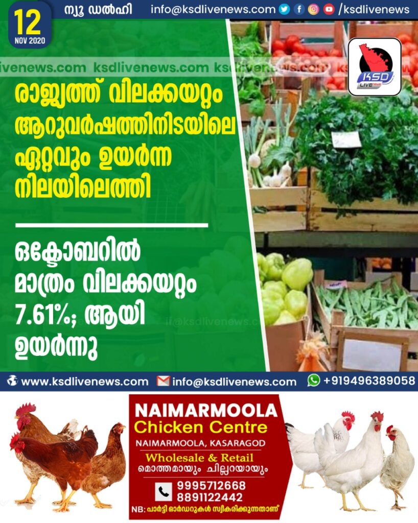 ഒക്ടോബറില് മാത്രം വിലക്കയറ്റം 7.61%; ആയി ഉയർന്നു