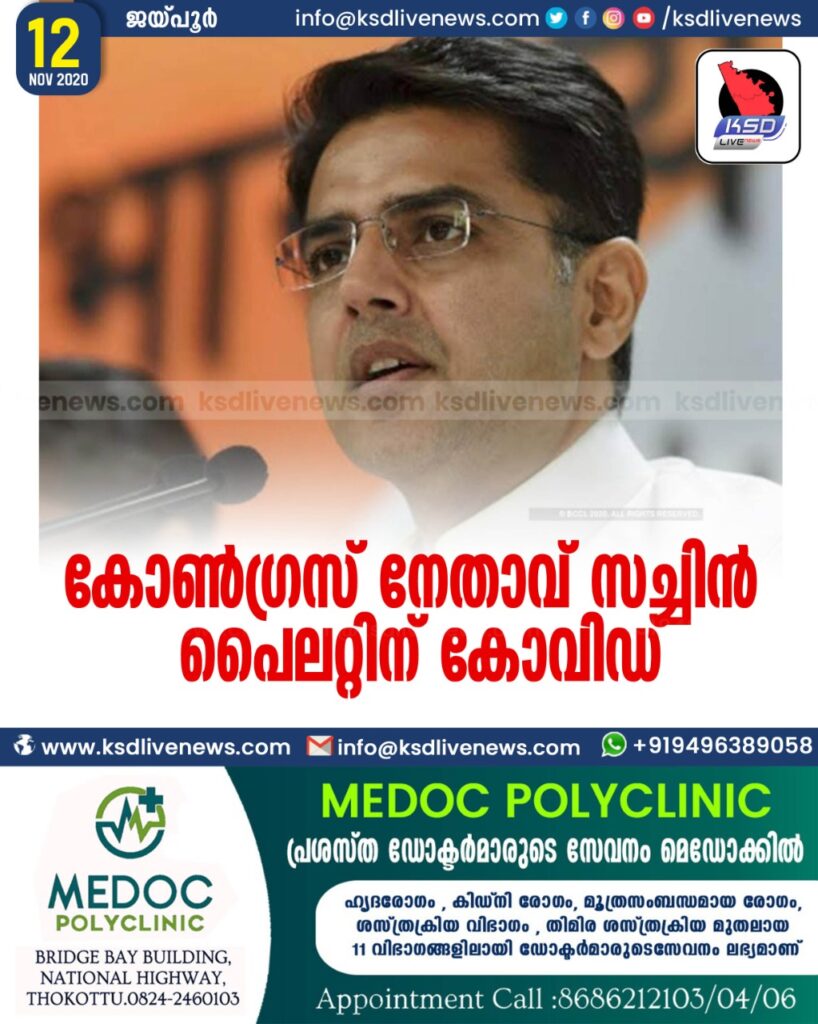 കോണ്‍ഗ്രസ് നേതാവ് സച്ചിന്‍ പൈലറ്റിന് കോവിഡ്