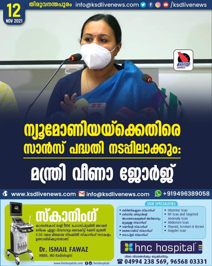 ന്യൂമോണിയയ്ക്കെതിരെ സാന്സ് പദ്ധതി നടപ്പിലാക്കും: മന്ത്രി വീണാ ജോര്ജ്