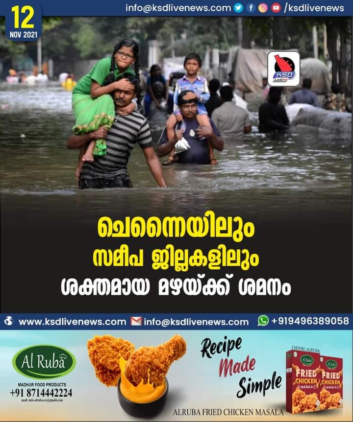 ചെന്നൈയിലും സമീപ ജില്ലകളിലും ശക്തമായ മഴയ്ക്ക് ശമനം