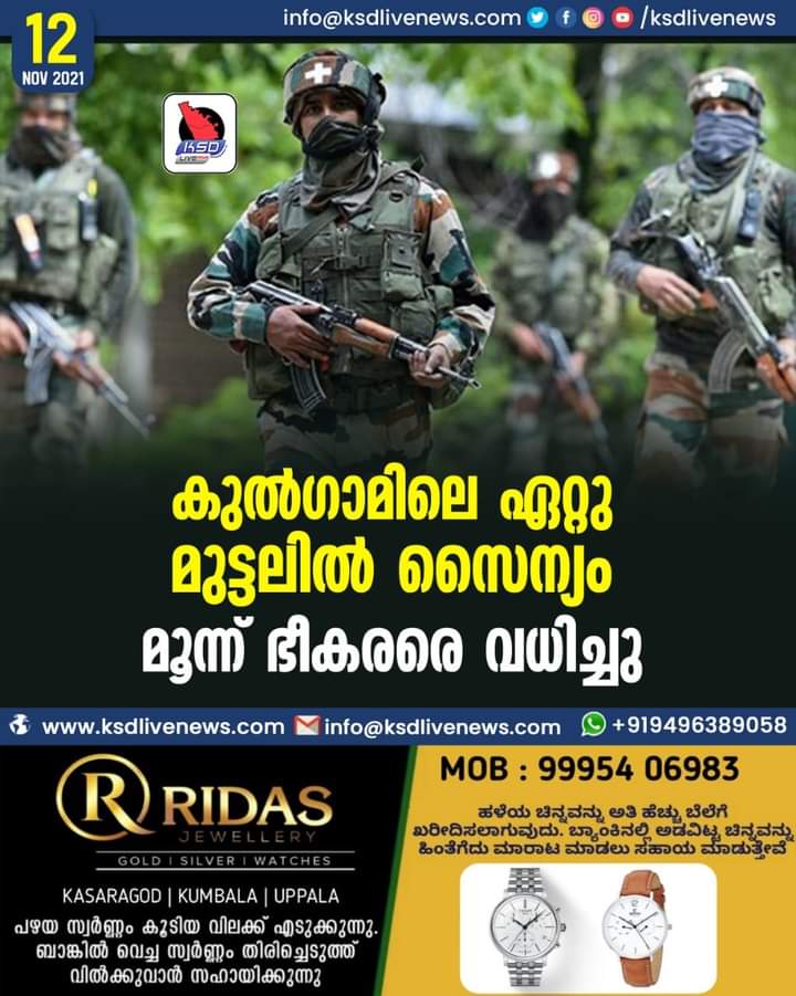 കുല്ഗാമിലെ ഏറ്റുമുട്ടലില് സൈന്യം മൂന്ന് ഭീകരരെ വധിച്ചു