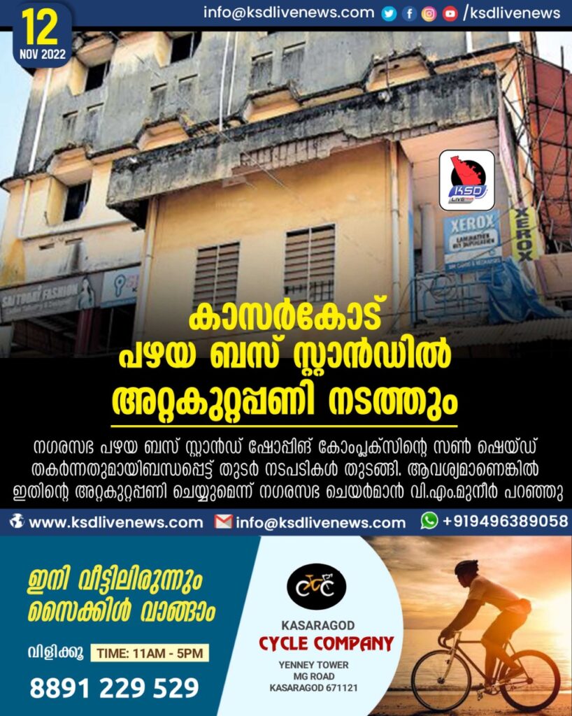 കാസർകോട് പഴയ ബസ് സ്റ്റാൻഡിൽ അറ്റകുറ്റപ്പണി നടത്തും