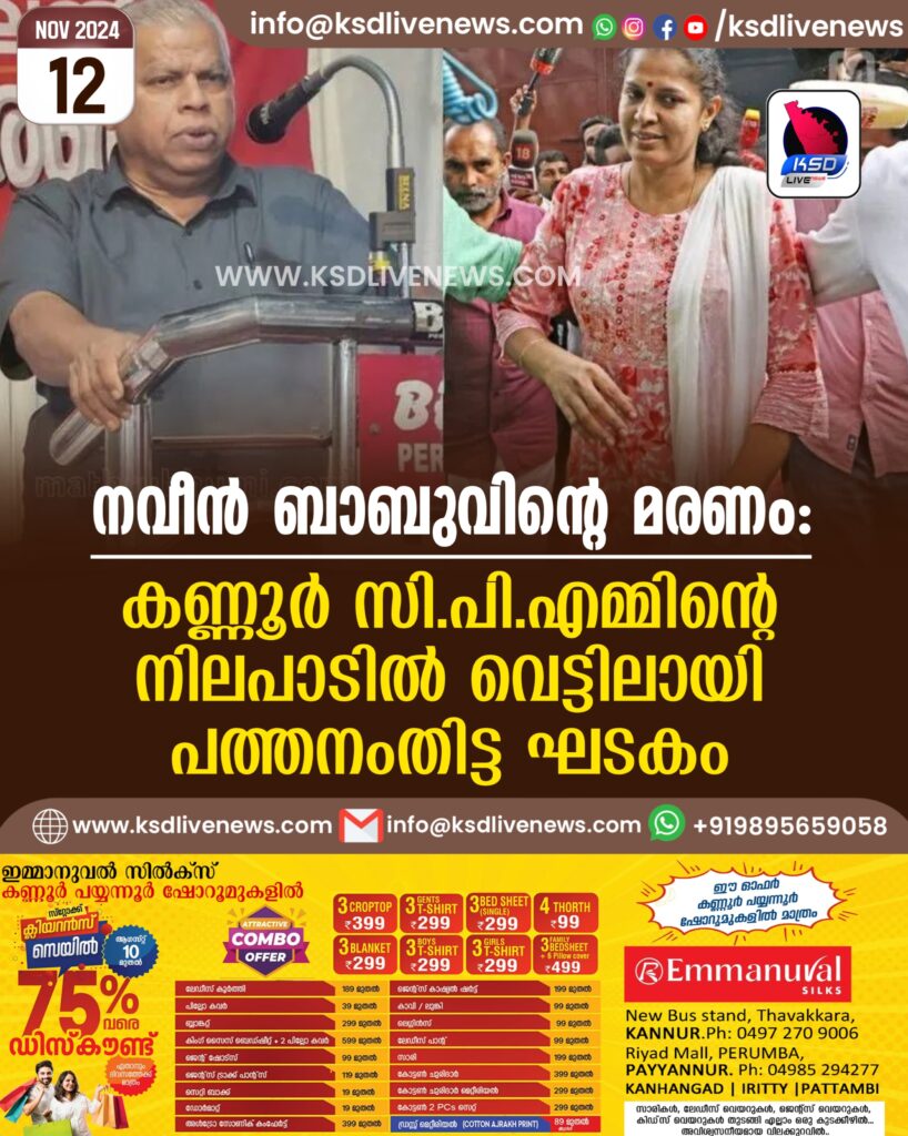 നവീന് ബാബുവിന്റെ മരണം; കണ്ണൂര് സി.പി.എമ്മിന്റെ നിലപാടില് വെട്ടിലായി പത്തനംതിട്ട ഘടകം