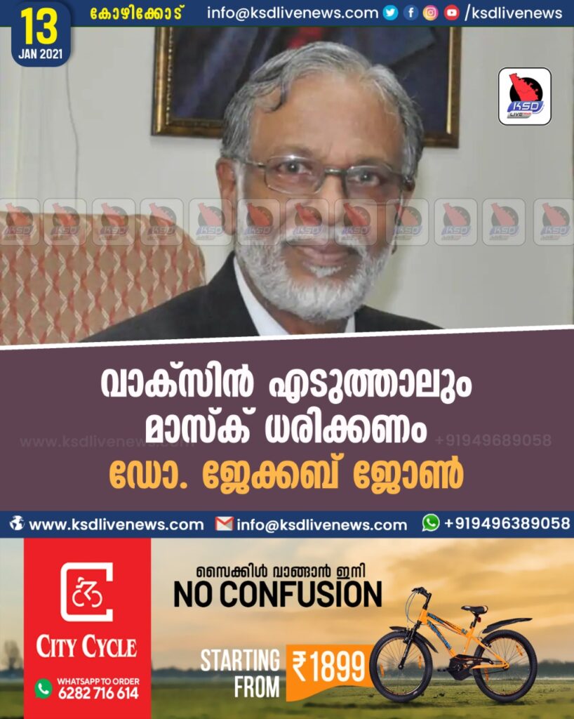 വാക്സിന്‍ എടുത്താലും മാസ്‌ക് ധരിക്കണം- ഡോ. ജേക്കബ് ജോണ്‍
