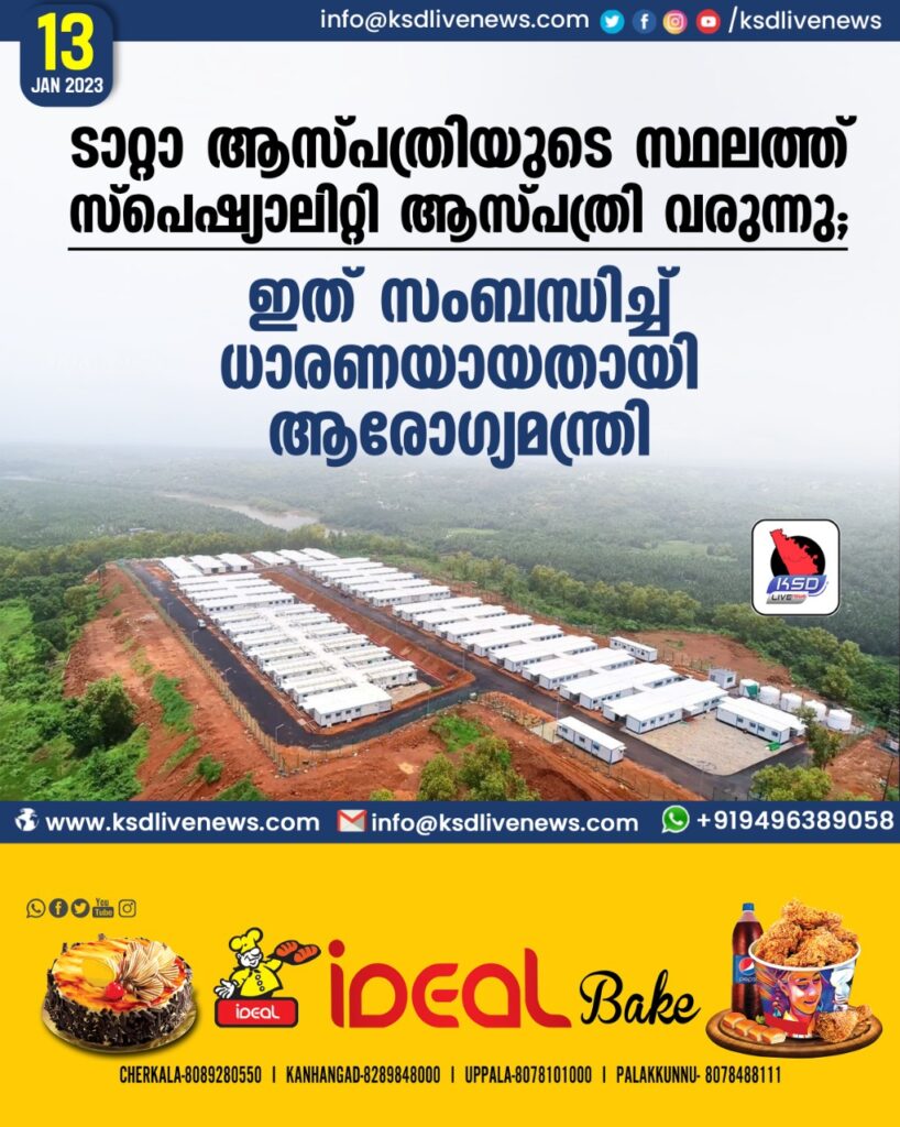 ടാറ്റാ ആസ്പത്രിയുടെ സ്ഥലത്ത് സ്പെഷ്യാലിറ്റി ആസ്പത്രി വരുന്നു; ഇത് സംബന്ധിച്ച് ധാരണയായതായി ആരോഗ്യമന്ത്രി