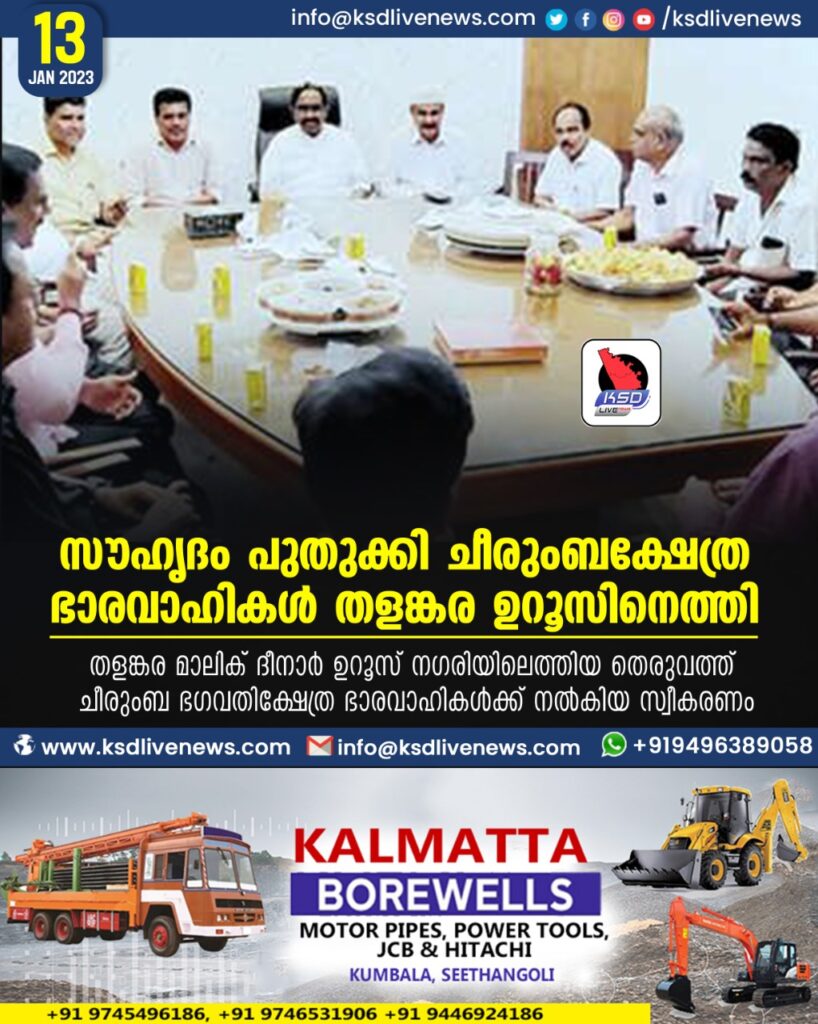 സൗഹൃദം പുതുക്കി ചീരുംബക്ഷേത്ര ഭാരവാഹികൾ തളങ്കര ഉറൂസിനെത്തി