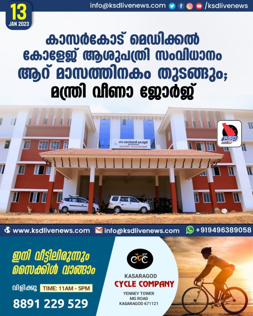 കാസർകോട് മെഡിക്കൽ കോളേജ് ആശുപത്രി സംവിധാനം ആറ് മാസത്തിനകം തുടങ്ങും -മന്ത്രി വീണാ ജോർജ്