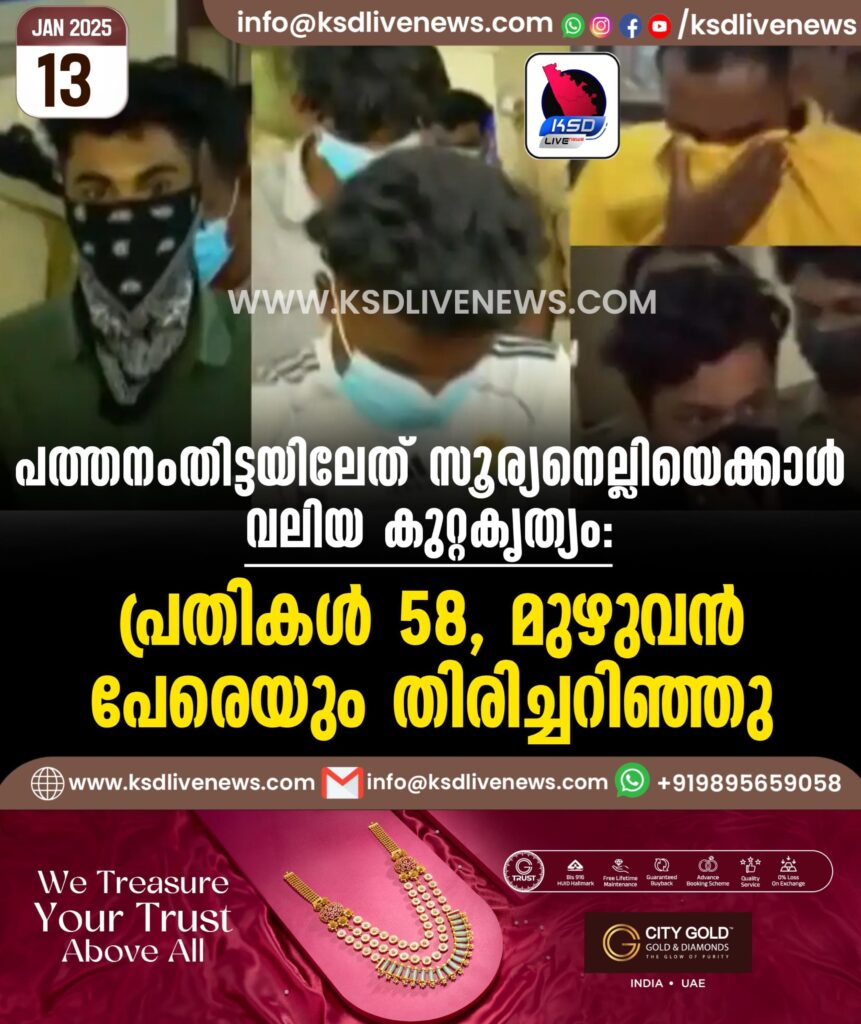 പത്തനംതിട്ടയിലേത് സൂര്യനെല്ലിയെക്കാൾ വലിയ കുറ്റകൃത്യം: പ്രതികള് 58, മുഴുവന് പേരെയും തിരിച്ചറിഞ്ഞു