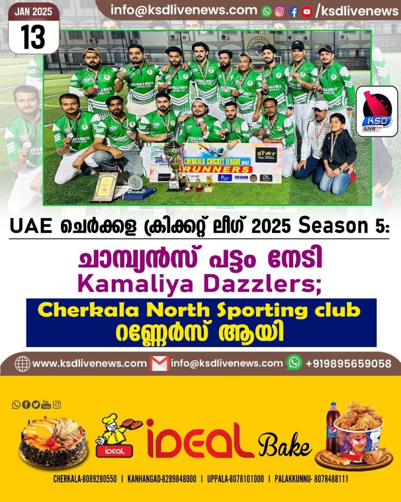 UAE ചെർക്കള ക്രിക്കറ്റ് ലീഗ് 2025 Season 5; ചാമ്പ്യൻസ് പട്ടം നേടി Kamaliya Dazzlers, Cherkala North Sporting Club റണ്ണേർസ് ആയി