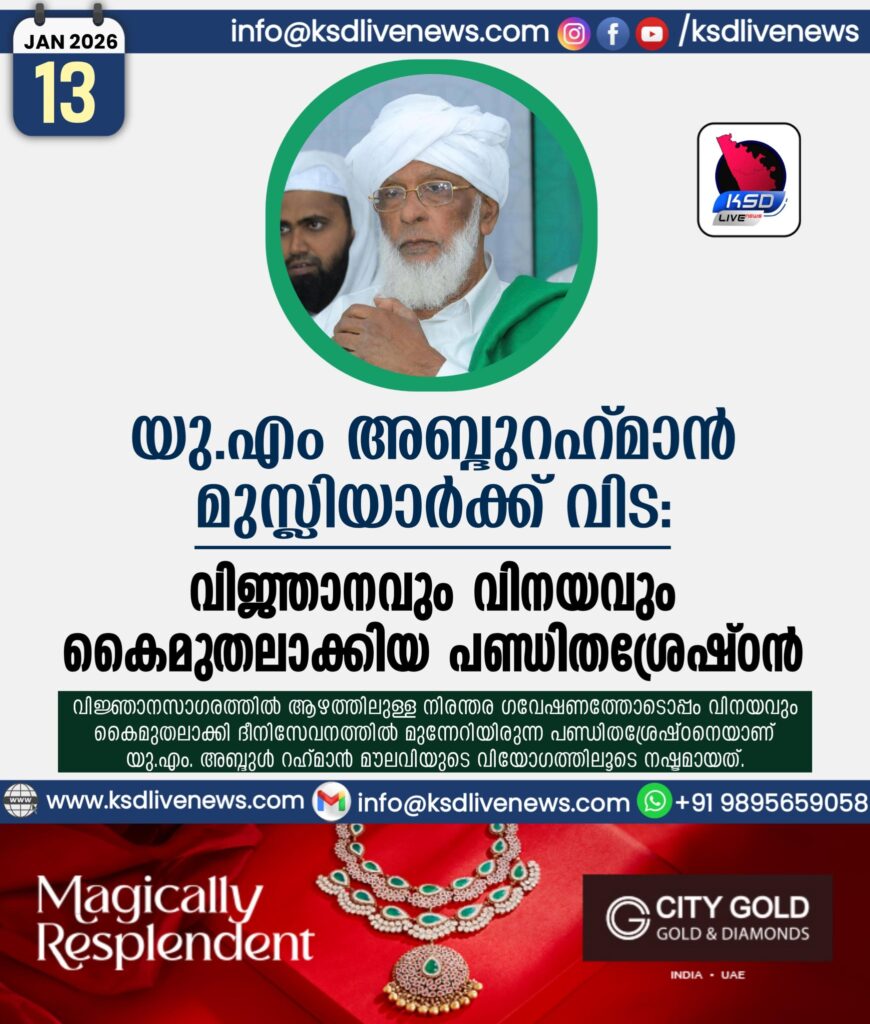 യു.എം അബ്ദുറഹ്മാൻ മുസ്ലിയാർക്ക് വിട: വിജ്ഞാനവും വിനയവും കൈമുതലാക്കിയ പണ്ഡിതശ്രേഷ്ഠൻ
