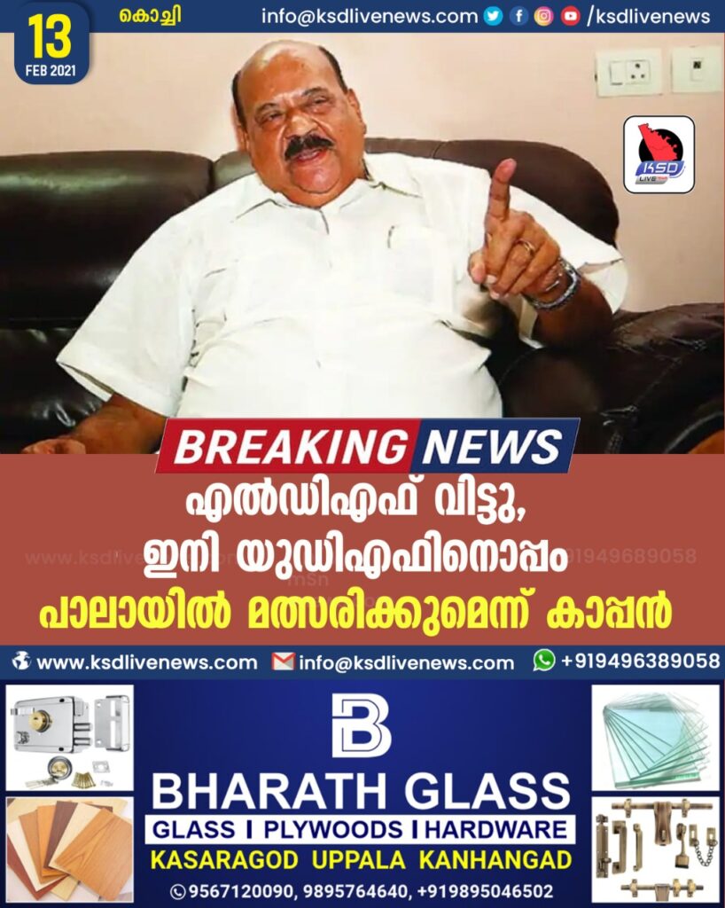 എല്‍ഡിഎഫ് വിട്ടു, ഇനി യുഡിഎഫിനൊപ്പം: പാലായില്‍ മത്സരിക്കുമെന്ന്‌ കാപ്പന്‍