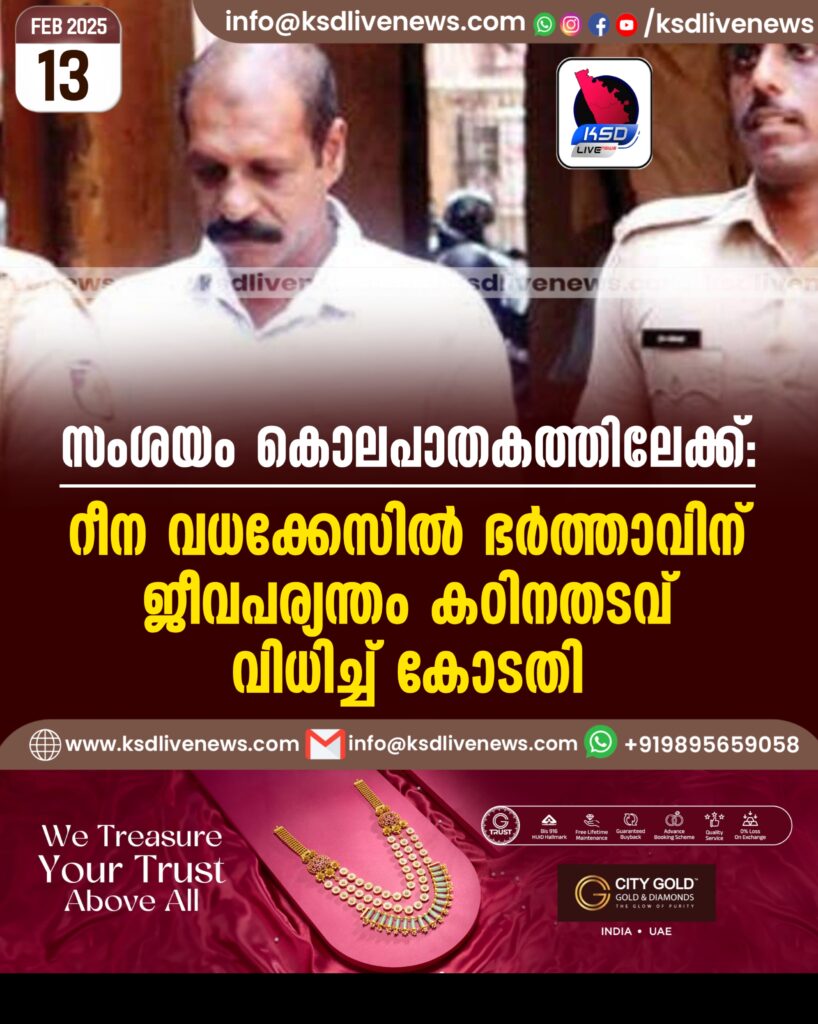 സംശയം കൊലപാതകത്തിലേക്ക്’; റീന വധക്കേസിൽ ഭർത്താവിന് ജീവപര്യന്തം കഠിനതടവ് വിധിച്ച് കോടതി