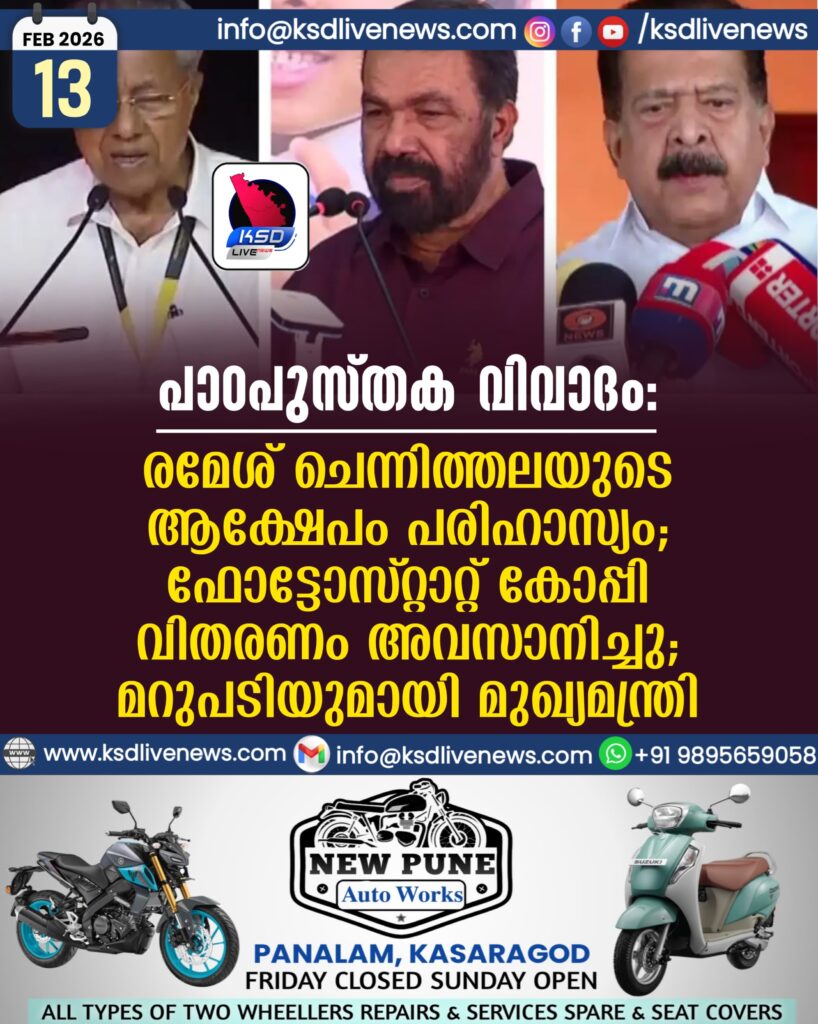 പാഠപുസ്തകവിവാദം; ‘രമേശ് ചെന്നിത്തലയുടെ ആക്ഷേപം പരിഹാസ്യം, ഫോട്ടോസ്റ്റാറ്റ് കോപ്പി വിതരണം അവസാനിച്ചു’; മറുപടിയുമായി മുഖ്യമന്ത്രി