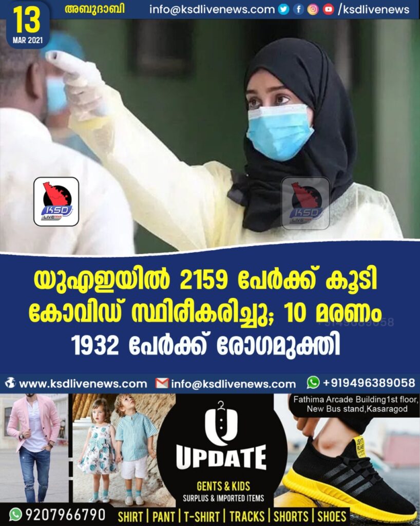 യുഎഇയില് 2159 പേര്ക്ക് കൂടി കോവിഡ് സ്ഥിരീകരിച്ചു; 10 മരണം