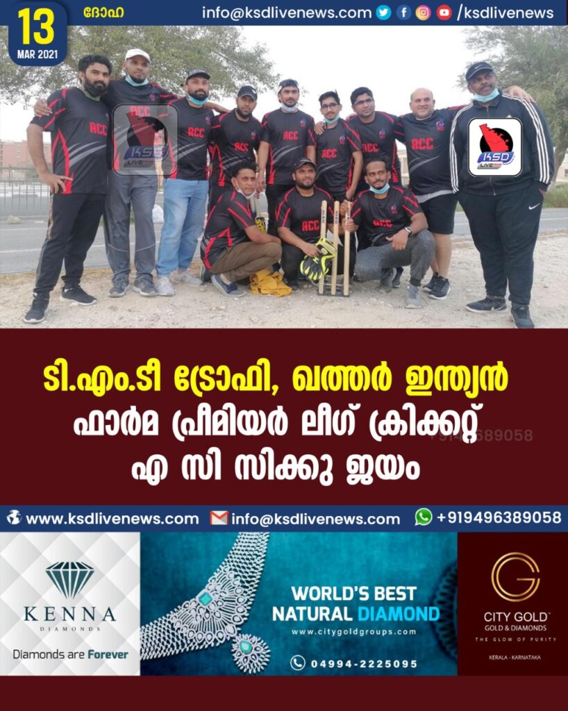 ട്ടി എം ട്ടീ ട്രോഫി, ഖത്തർ ഇന്ത്യൻ ഫാർമ പ്രീമിയർ ലീഗ്‌ ക്രിക്കറ്റ്‌ എ സി സിക്കു ജയം