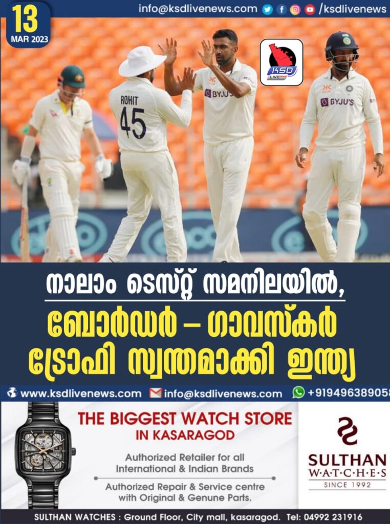 നാലാം ടെസ്റ്റ് സമനിലയില്, ബോര്ഡര്-ഗാവസ്കര് ട്രോഫി സ്വന്തമാക്കി ഇന്ത്യ