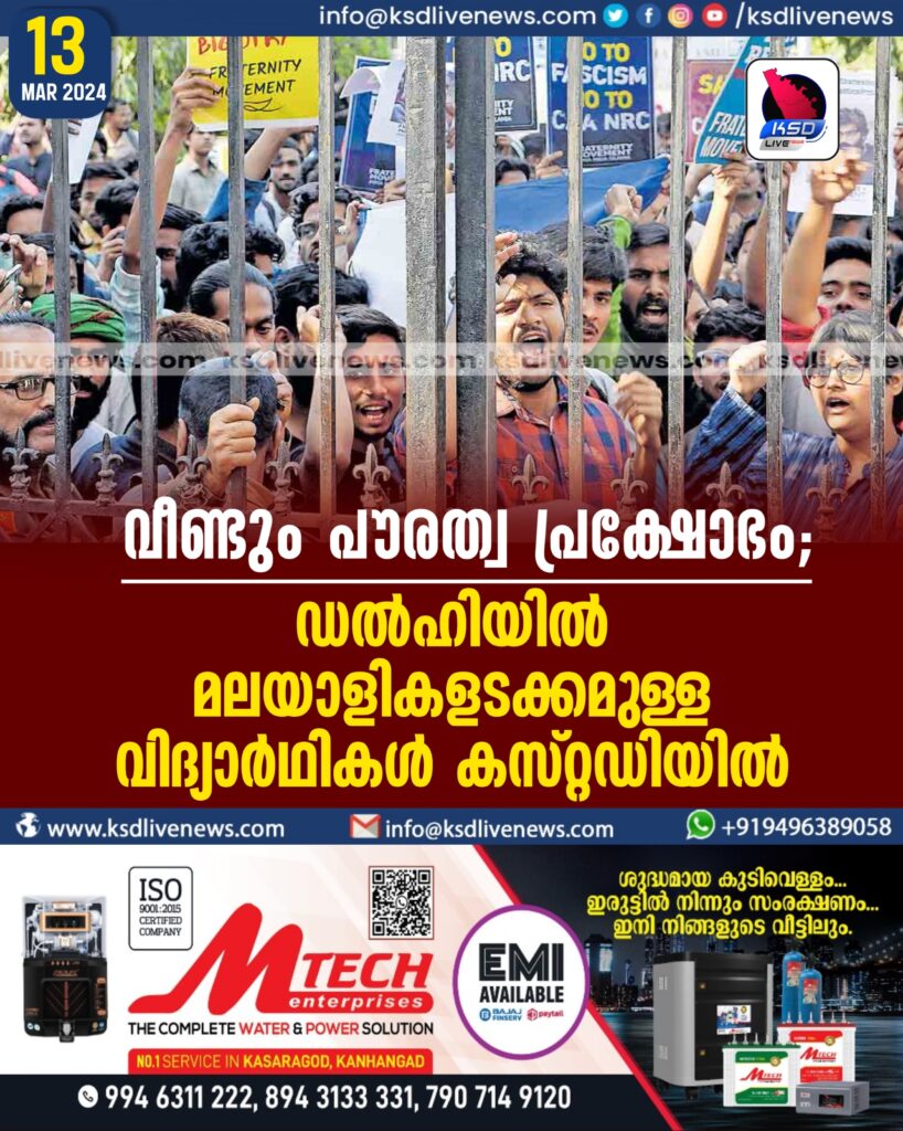 വീണ്ടും പൗരത്വ പ്രക്ഷോഭം; ഡൽഹിയിൽ മലയാളികളടക്കമുള്ള വിദ്യാർഥികൾ കസ്റ്റഡിയിൽ