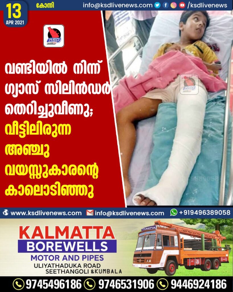 വണ്ടിയില് നിന്ന് ഗ്യാസ് സിലിന്ഡര് തെറിച്ചു വീണു; വീട്ടിലിരുന്ന അഞ്ചുവയസ്സുകാരന്റെ കാലൊടിഞ്ഞു