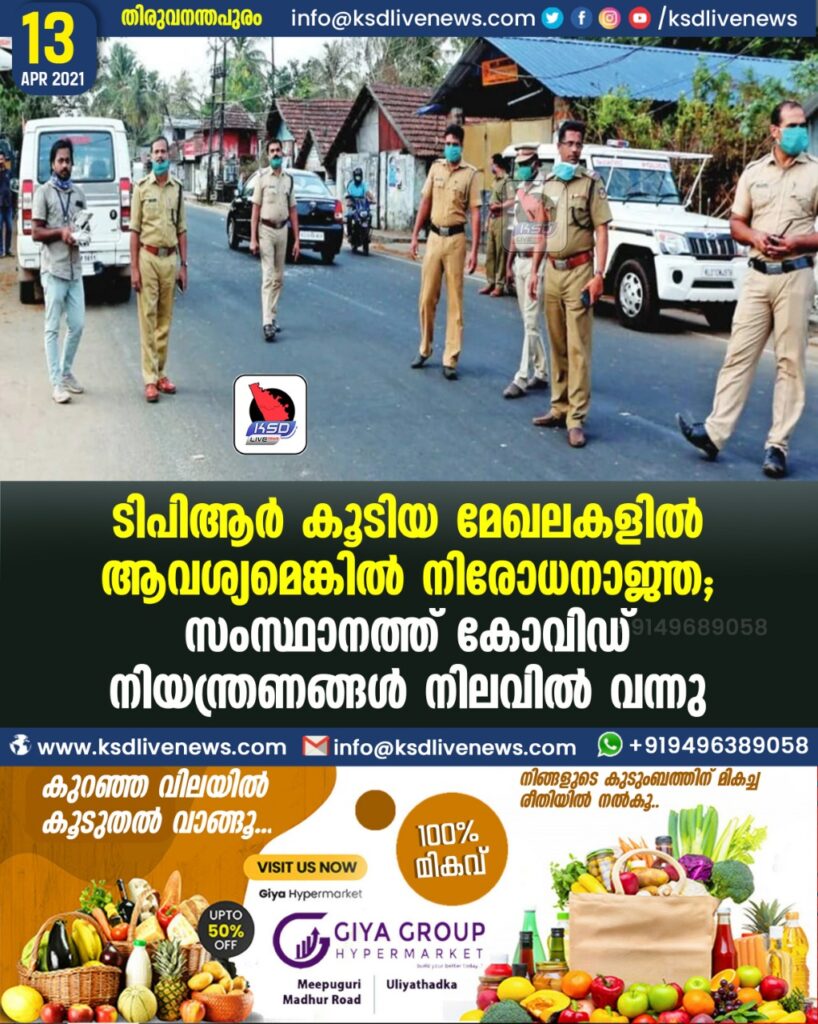 ടിപിആര് കൂടിയ മേഖലകളില് ആവശ്യമെങ്കിൽ നിരോധനാജ്ഞ; സംസ്ഥാനത്ത് കോവിഡ് നിയന്ത്രണങ്ങള് നിലവില് വന്നു