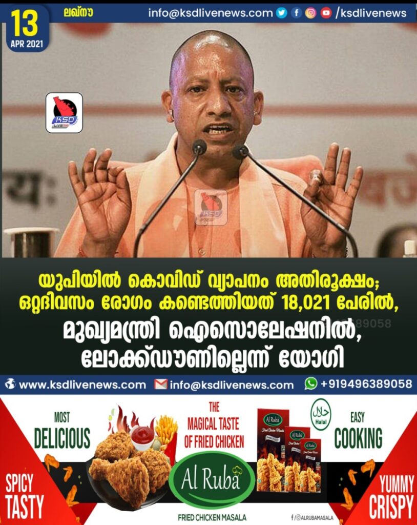 യുപിയില് കൊവിഡ് വ്യാപനം അതിരൂക്ഷം; ഒറ്റദിവസം രോഗം കണ്ടെത്തിയത് 18,021 പേരില്, മുഖ്യമന്ത്രി ഐസൊലേഷനില്, ലോക്ക്ഡൗണില്ലെന്ന് യോഗി