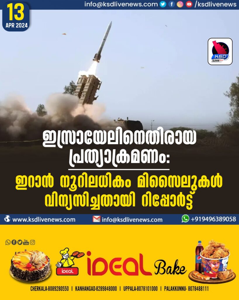 ഇസ്രായേലിനെതിരായ പ്രത്യാക്രമണം: ഇറാൻ നൂറിലധികം മിസൈലുകള് വിന്യസിച്ചതായി റിപ്പോര്ട്ട്