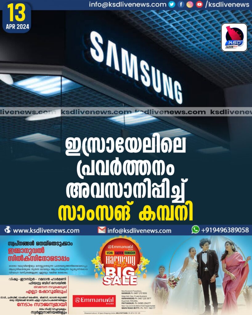 ഇസ്രായേലിലെ പ്രവര്ത്തനം അവസാനിപ്പിച്ച് സാംസങ് കമ്പനി