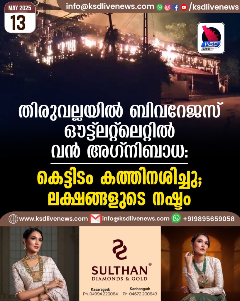 തിരുവല്ലയിൽ ബിവറേജസ് ഔട്ട്ലറ്റ്ലെറ്റിൽ വൻ അഗ്നിബാധ: കെട്ടിടം കത്തിനശിച്ചു; ലക്ഷങ്ങളുടെ നഷ്ടം