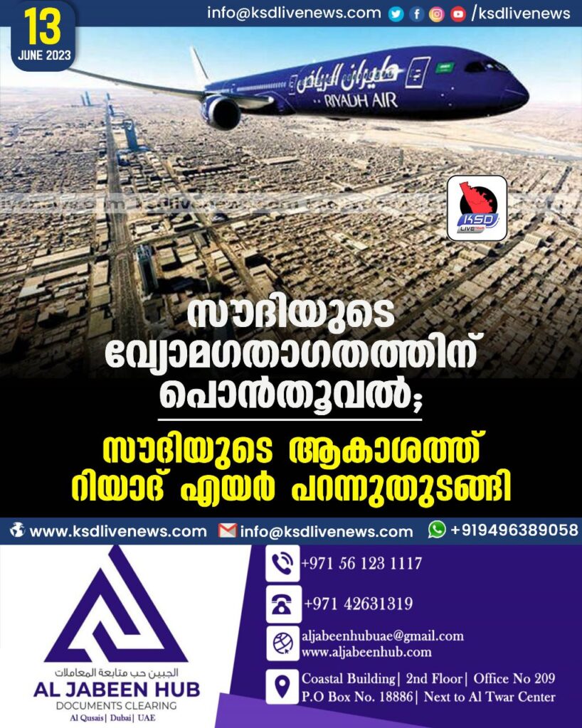 റിയാദ് : സൗദി അറേബ്യയുടെ തലസ്ഥാനമായ റിയാദിൽ പുതിയ വിമാനക്കമ്പനിയായ റിയാദ് എയർ പറന്നുതുടങ്ങി. വ്യോമസേനാ വിമാനങ്ങളുടെ അകമ്പടിയോടെയായിരുന്നു ആദ്യപറക്കൽ. സ്വദേശികൾക്കും വിദേശികൾക്കും വിമാനം കാണാനുള്ള അവസരമായാണ് കമ്പനിയുടെ ആദ്യവിമാനം പറന്നത്. റിയാദ് കിങ് ഖാലിദ് വിമാനത്താവളത്തിൽനിന്ന് ബി787 ബോയിങ് റിയാദ് എയർ വിമാനം സൗദി സമയം തിങ്കളാഴ്ച ഉച്ചയ്ക്ക് ഒരുമണിക്കാണ് പറന്നുയർന്നത്. ബോളിബാഡ് സിറ്റി, കിങ്ഡം സെന്റർ, കിങ് സൗദ് യൂണിവേഴ്സിറ്റി, കിങ് ഖാലിദ് യൂണിവേഴ്സിറ്റി, ഫൈസലിയ ടവർ, മുറബ്ബ എന്നിവിടങ്ങൾക്ക് മുകളിലൂടെയാണ് വിമാനം പറന്നത്. വ്യോമഗതാഗത മേഖലയുടെ വികസനത്തിന് സംഭാവന നൽകുന്നതിനും രാജ്യത്തിന്റെ തന്ത്രപ്രധാനമായ സ്ഥാനം വർധിപ്പിക്കുന്നതിനുമായി പുതിയ ദേശീയ വിമാനക്കമ്പനിയായ റിയാദ് എയർലൈൻസിനായി പൊതു നിക്ഷേപക ഫണ്ട് ചെലവഴിക്കുമെന്ന് കിരീടാവകാശി മുഹമ്മദ് ബിൻ സൽമാൻ രാജകുമാരൻ നേരത്തേ പ്രഖ്യാപിച്ചിരുന്നു. 2030-നകം ലോകത്തെ 100-ലേറെ രാജ്യങ്ങളിലേക്ക് സർവീസുകൾ ആരംഭിക്കാനാണ് റിയാദ് എയർലൈൻസിന്റെ ലക്ഷ്യം