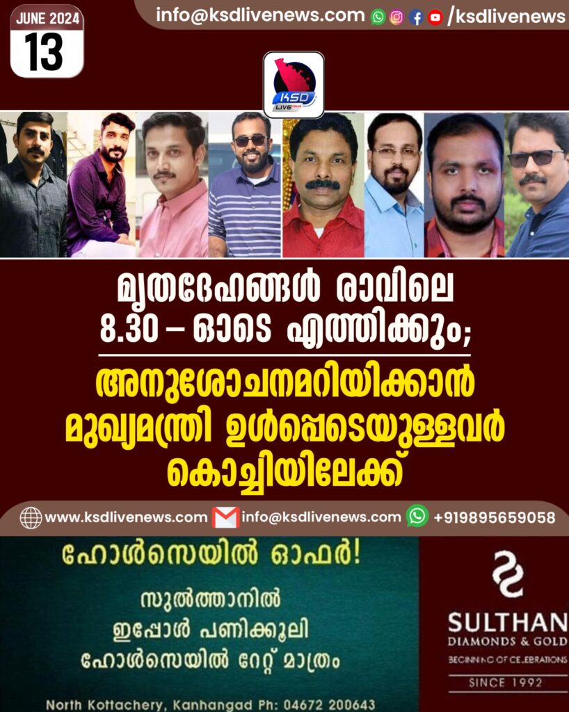 മൃതദേഹങ്ങൾ രാവിലെ 8.30-ഓടെ എത്തിക്കും; അനുശോചനമറിയിക്കാൻ മുഖ്യമന്ത്രി ഉൾപ്പെടെയുള്ളവർ കൊച്ചിയിലേക്ക്